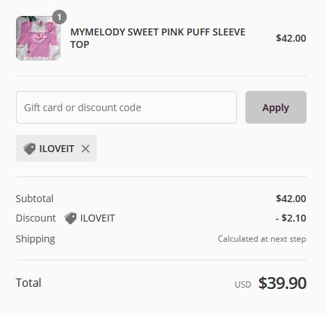 After filling your cart with all the products you love, click the “Checkout” button from the Shopping Cart page. Enter your discount code in textbox field Gift Card or Discount Code. Then, click the “Apply” button to add the promotion to your order. You can enter the discount code anytime during the checkout process before payment is completed.